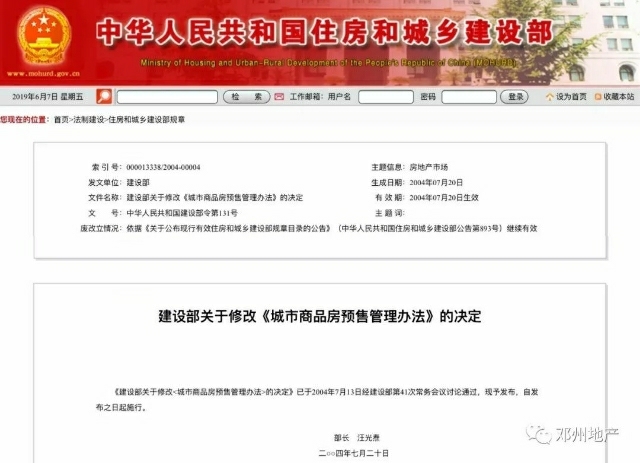 建设部令第131号《城市商品房预售管理办法》第六条:商品房预售实行许可制度。开发企业进行商品房预售,应当向房地产管理部门申请预售许可,取得《商品房预售许可证》。未取得《商品房预售许可证》的,不得进行商品房预售。(具体信息请看文末的附件)