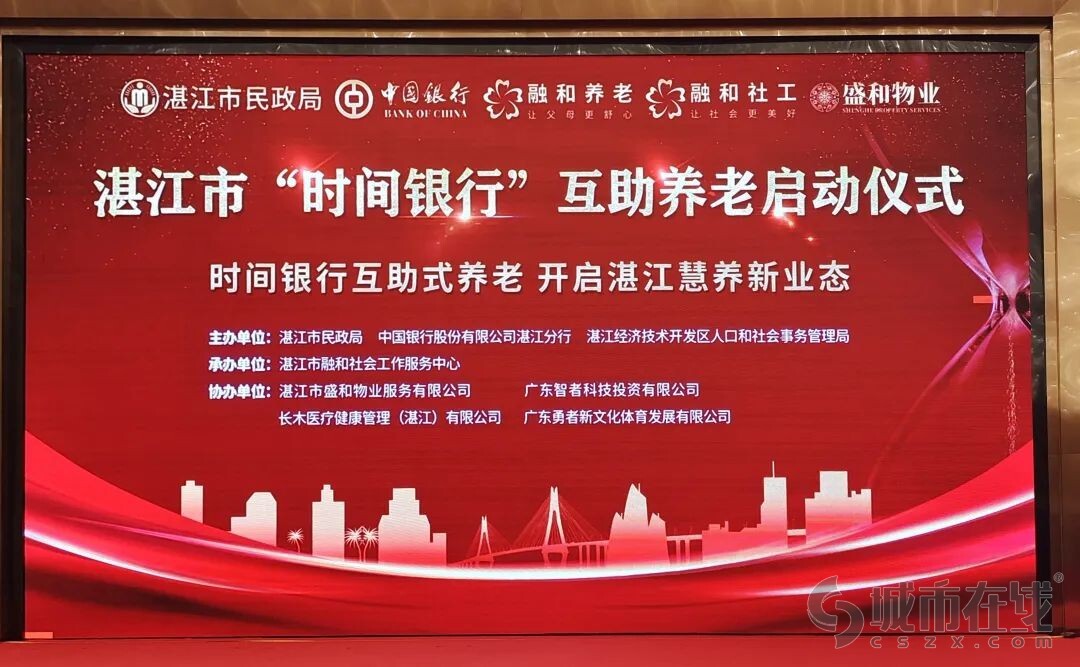 10月14日重阳节之际,湛江市“时间银行”互助式养老、开启湛江慧养新业态项目在湛江市成功启动,启动仪式由中国银行、湛江市民政局、湛江经济技术开发区人口和社会事务管理局联合主办,湛江市民政局、中国银行广东省分行、中国银行湛江分行、湛江经济技术开发区人口和社会事务管理局相关领导,志愿者团体和部分长者代表出席本次活动。