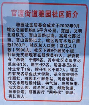 茂名市茂南区官渡街道雅园社区居委会 电话06682958722